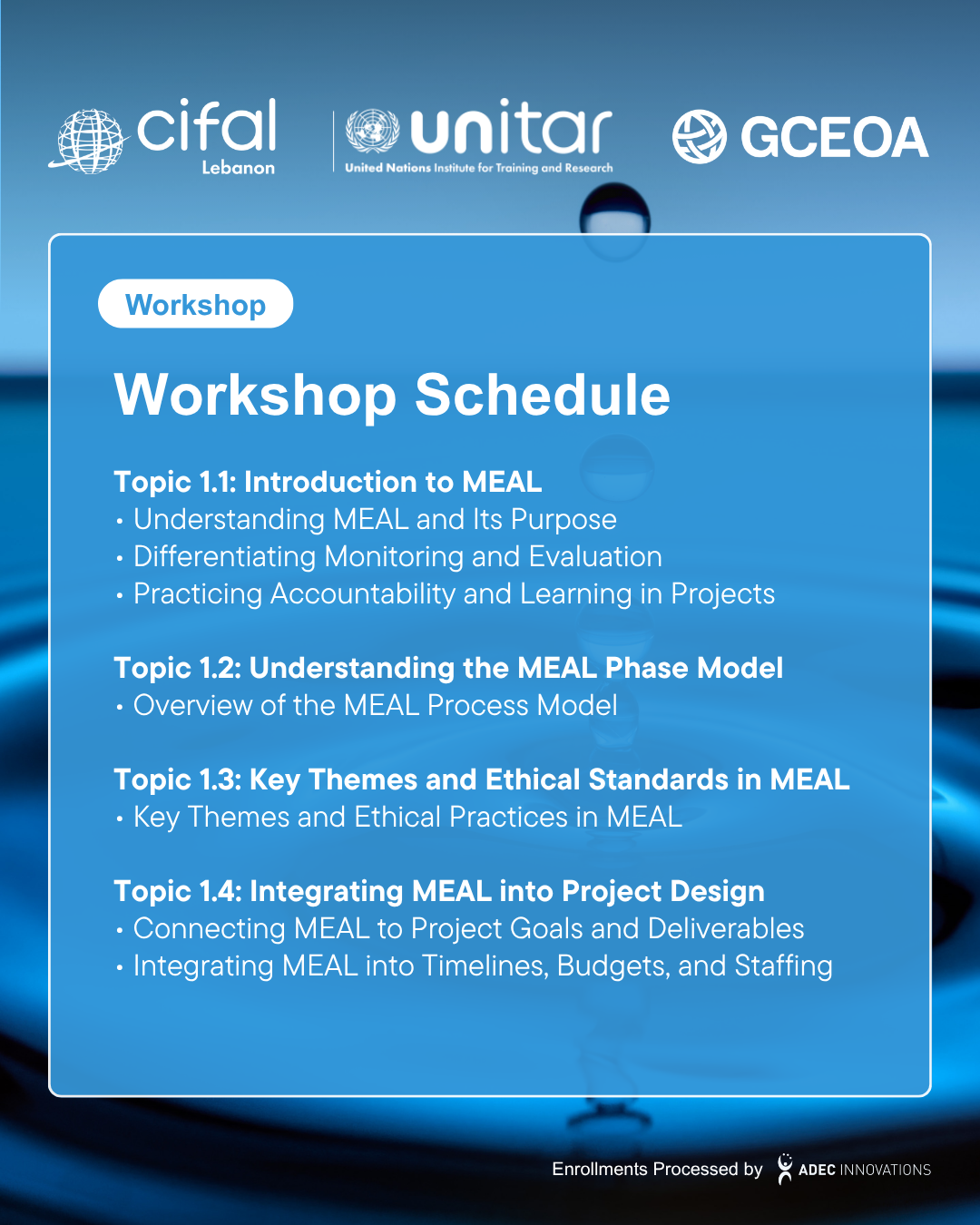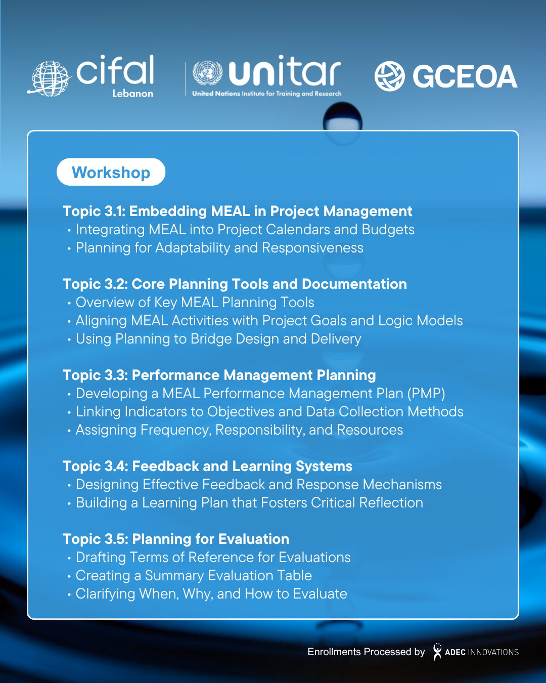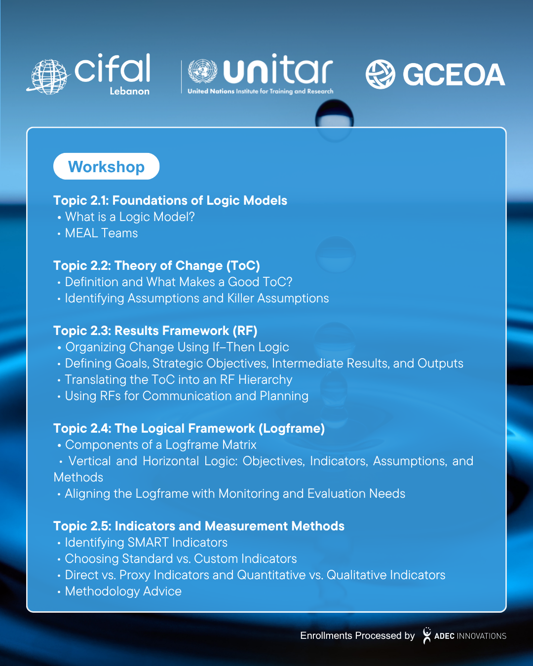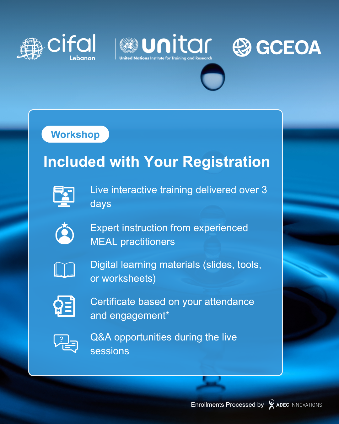 Enrollment registration and payment are managed by Global CEO Alliance in partnership with ADEC Innovations FZ LLE. All enrollment fees for CIFAL Lebanon workshops and courses are securely processed through Stripe. On your bank or card statement, the charge will appear as "CIFAL Fees".